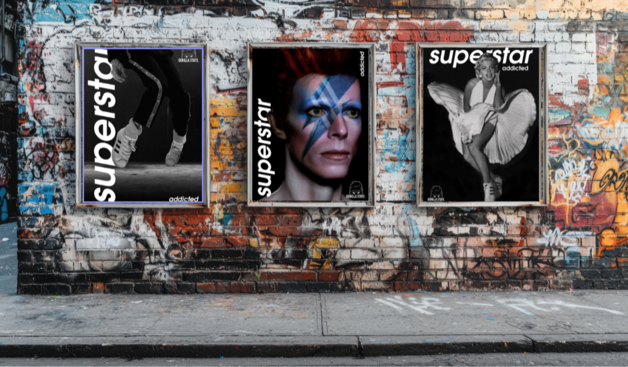 Gorilla State: where bold design meets timeless rebellion. Rooted in the raw energy of Casuals fashion, music and fan culture, we re-imagine iconic images with a terrace fuelled edge. From Marilyn Monroe and Judy Garland AKA Dorothy, to David Bowie and The Beatles - only true icons get the Gorilla State retro treatment. Gorilla State artwork is a statement of homage — a nod to legends, to retro Casual Culture, a badge of belonging. Welcome to Gorilla State. Wear the T-shirt. Own the print. Join the tribe.